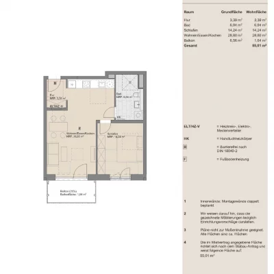 - Mit hochwertigem Fußbodenbelag in Holzoptik inkl. Fußbodenheizung